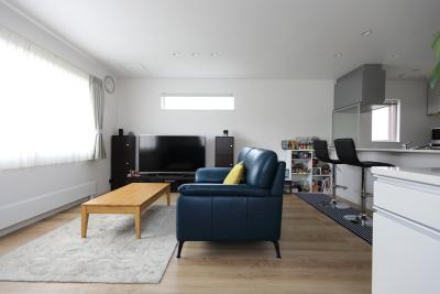 採光性に優れた2階リビング、リビングが見渡せる広々カウンターキッチン、白を基調とした壁紙やキッチンにメープルの床材がやさしく調和する、明るく開放的な空間が日々の中心に。